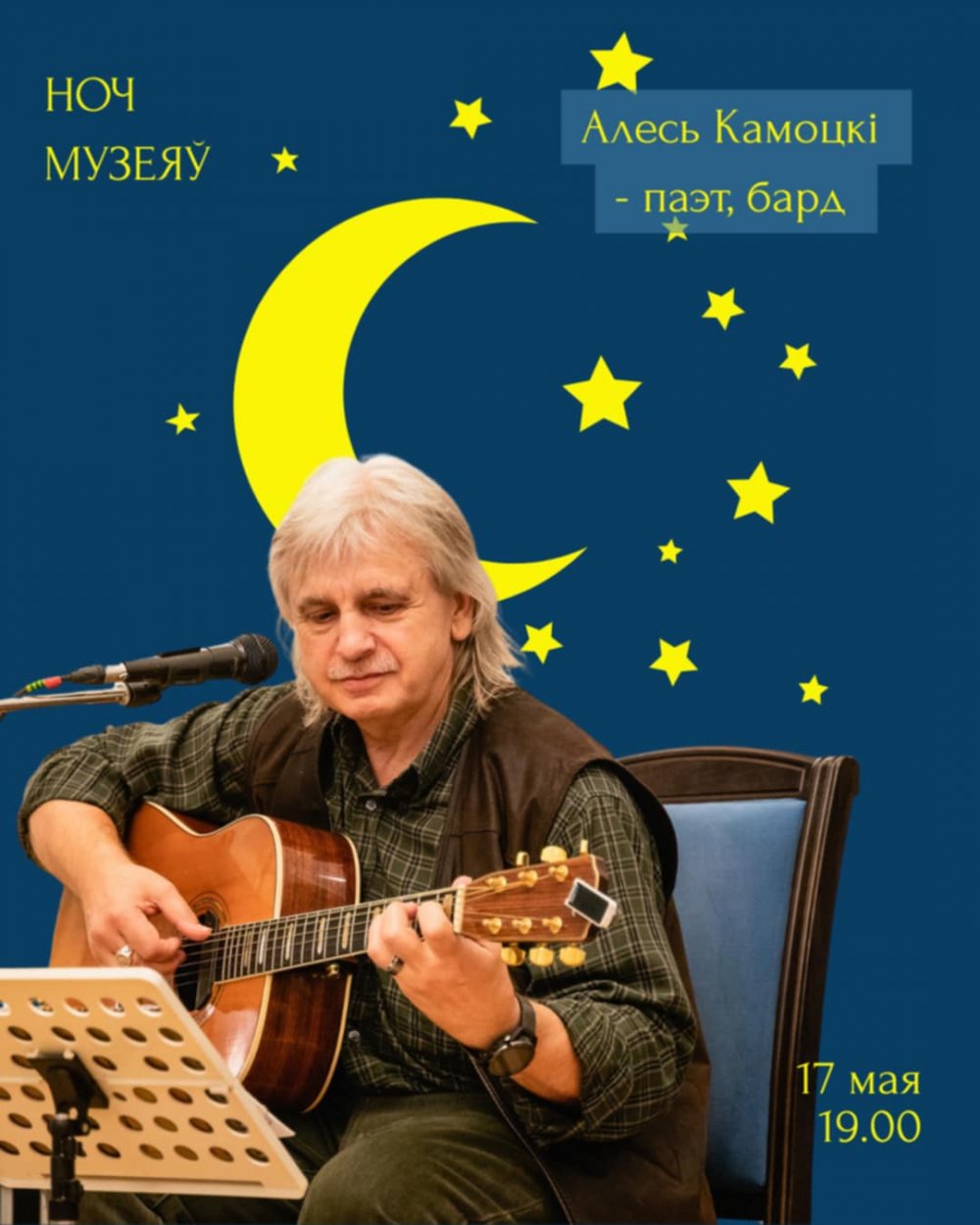 Якая "Ноч музеяў" без музыкі? Распачне мерапрыемства паэт і бард Алесь Камоцкі - майстар аўтарскай песні і пераспеваў сусветнай класікі. Ірландскія матывы і беларуская паэзія - "двайной красы аблік ядыны", як мог бы прамовіць Максім Багдановіч, бессмяротныя хіты і новыя песні. Запрашаем!