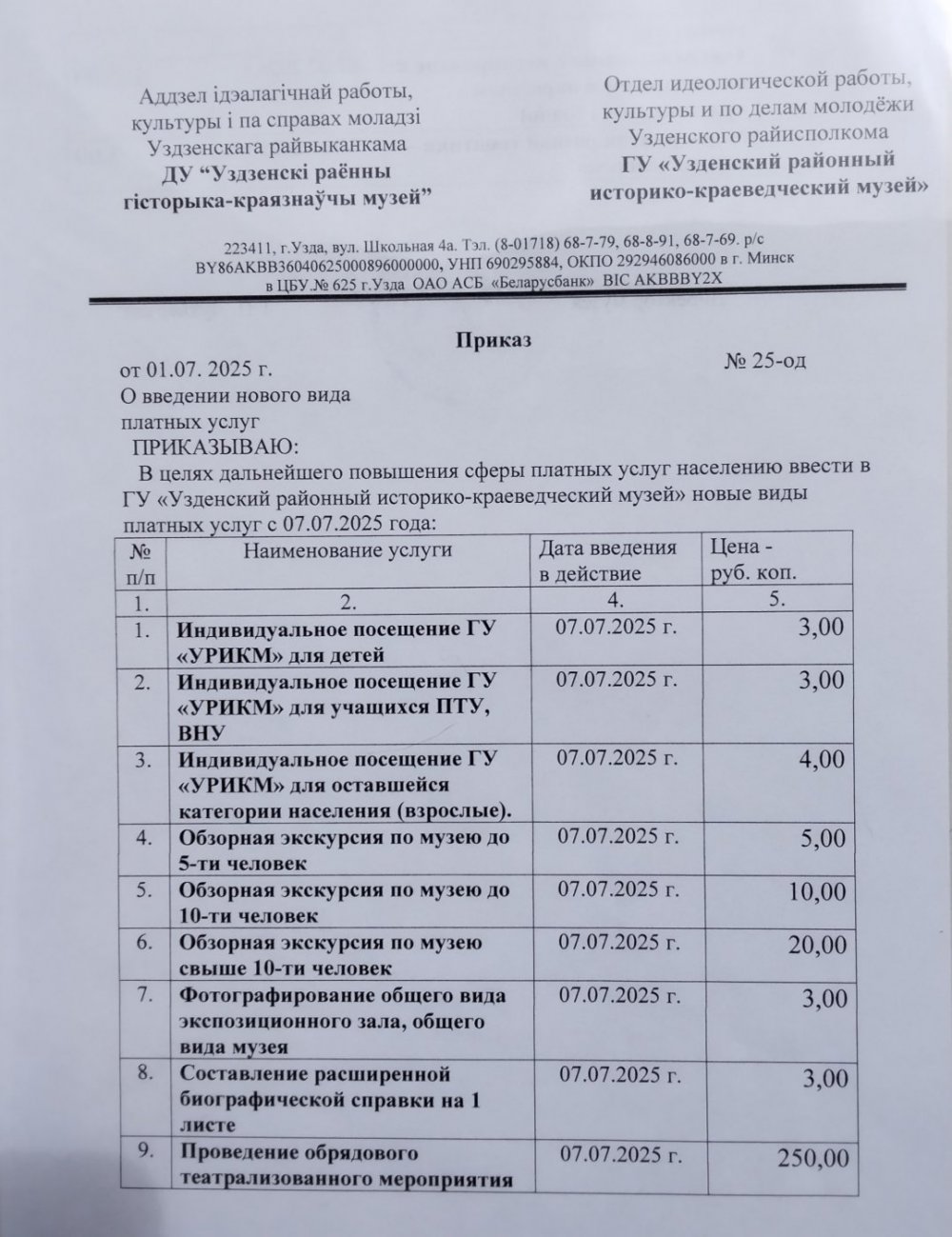 С 07.07.2025 новые цены на услуги
